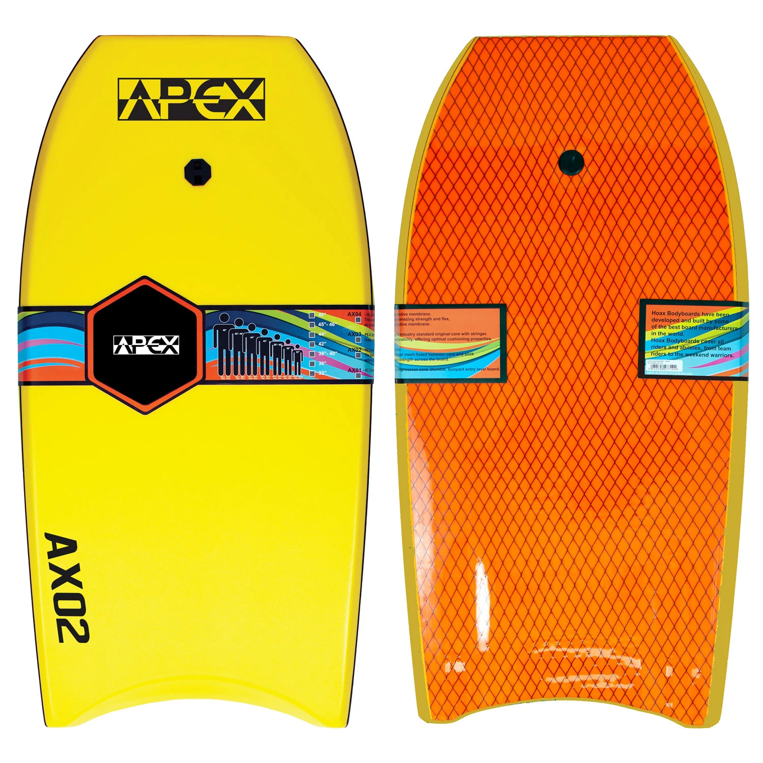 The Apex AX02 is based around a classic template with a crescent tail for control. The board features 60/40 rails and channels for drive and hold. Constructed with Cross link deck and rails for stiffness, an EPS core and a durable HDPE bottom skin with mesh for greater strength.