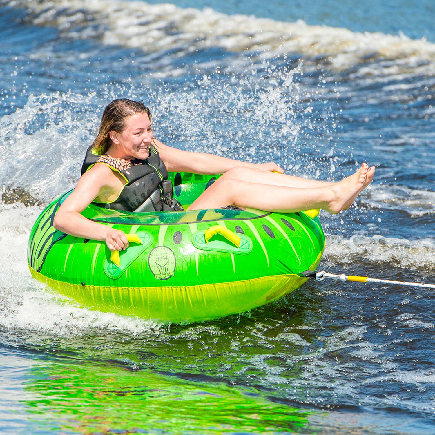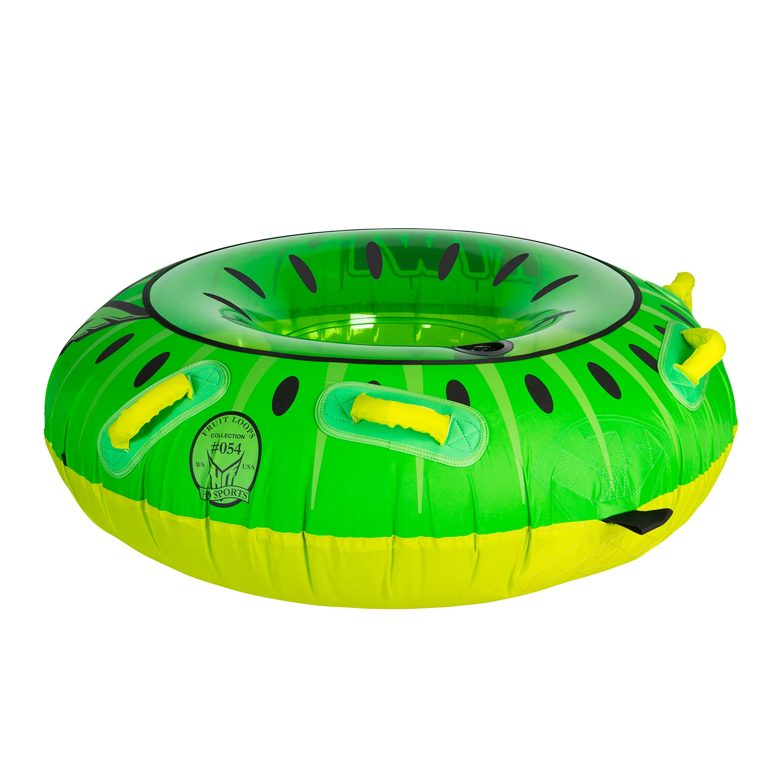 The Kiwi is a single rider, donut shaped tube that was designed with FUN in mind. Sit in the Kiwi with your feet forward or lay on your belly to put yourself in the heart of the action. The Kiwi has 2 sets of handles in just the right spot for either riding style. You will enjoy ultimate comfort with soft foam handles with built in knuckle guards. The 2-Way Boston valve makes inflation and deflation a snap and you’re sure to turn heads with this cool fruit inspired design. Get yourself a Kiwi and grab a slice of the sweet fruity fun!